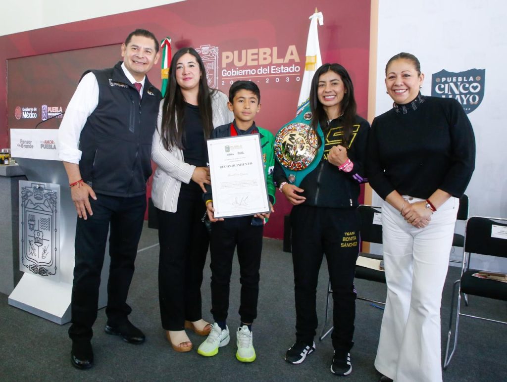 CIUDAD DE PUEBLA, Pue.- Al resaltar la importancia de que se reconozca el talento deportivo, cultural y artístico, como una herramienta para la reconstrucción del tejido social, el gobernador Alejandro Armenta Mier, comentó que mujeres y hombres como la boxeadora poblana, Gaby “La Bonita” Sánchez y el pequeño Leonel Cova Quintero, entre muchos otros, llenan…