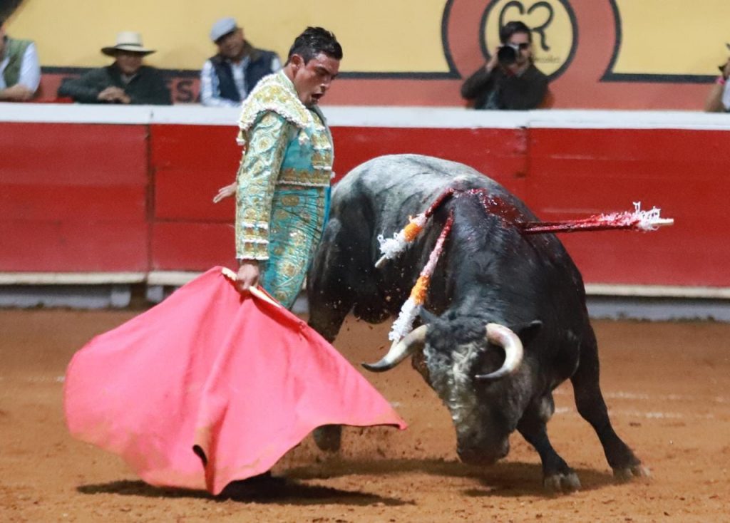 Su primero se llamó “Cafetero” No. 190 con 469kgs. Bonito cárdeno claro, al que el matador Gerardo toreó con temple y firmeza pues el de Rancho Seco fue bravo y embestía con fuerza. Los mejores momentos de la faena estuvieron por la diestra, se entregó en la suerte de matar, saliendo rebotado del encuentro y cortó dos orejas; el toro se llevó palmas en el arrastre.