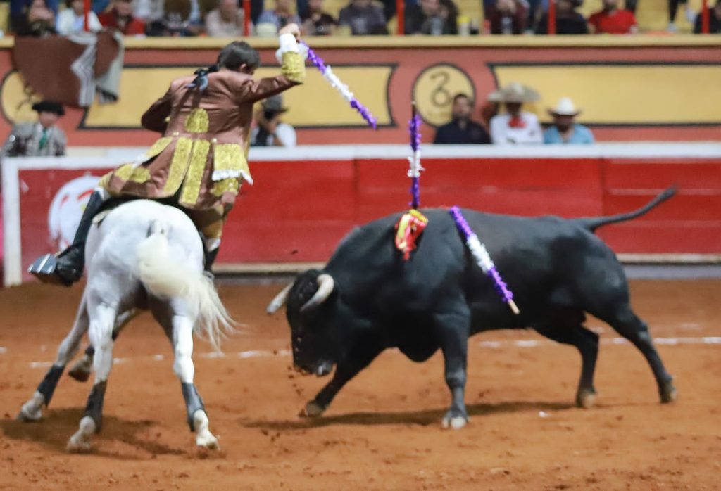 El joven caballista Fauro Aloi le cortó una oreja a su primero de nombre “Bucanero” No. 198 con 462 kgs que acudió a los encuentros con el caballo y se empleó en la capa de las cuadrillas. Fauro conectó de inmediato con el respetable haciendo gala de variedad y entrega. Con su segundo, que brindó al ganadero de Rancho Seco, don Sergio Hernández González, estuvo entregado. Un serio ejemplar de línea Murube que le pidió las cartas credenciales al joven rejoneador, pues el toro de nombre “Saladito” No. 142 con 455kgs se movía, transmitía en las embestidas y pedía sitio. Palmas por su actuación ya que el puntillero levantó en dos ocasiones al toro y tardó en caer. Por lo que se esfumó la posibilidad de cortar la segunda oreja.