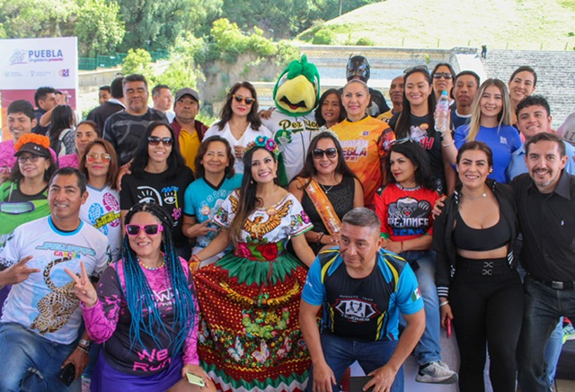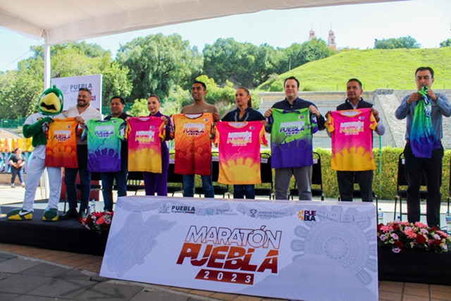Presentaron playeras y medallas; el jersey que portarán los corredores serán en tonos anaranjados, verde fosforescente y rosa; mientras la presea tendrá el relieve de la gran pirámide de Cholula