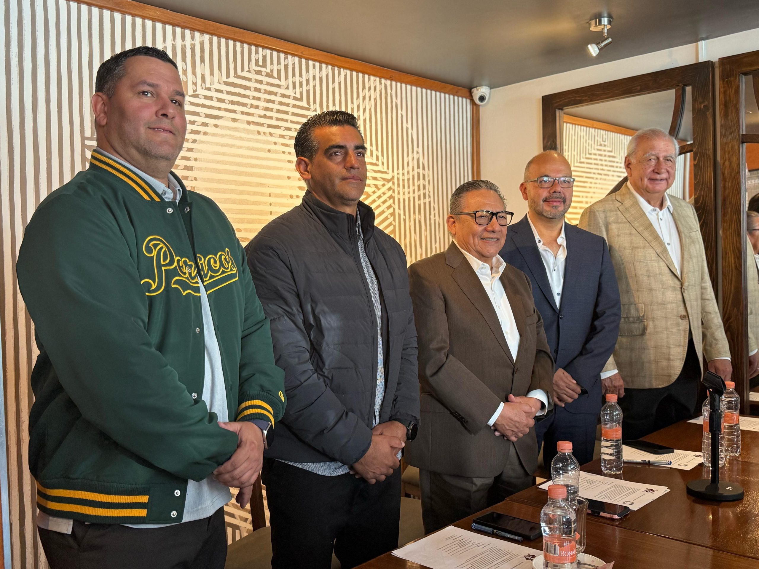 En rueda de prensa, Mario Montero, Marco Carpinteyro, don Jaime García Calderón, Luis Mauricio Suárez y Wilmer Reyna, dieron a conocer el calendario oficial de 60 partidos para la primera campaña del circuito de sucursales.