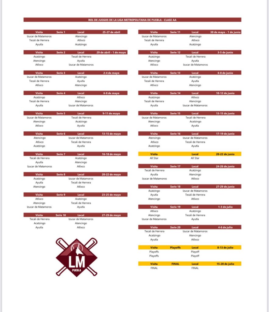 Las primeras series inaugurales se jugarán del 25 al 27 de abril, mientras que del 29 de abril al 1 de mayo corresponderá a las plazas de Tecali de Herrera, Izúcar de Matamoros y Ayutla tener su magna ceremonia de apertura.