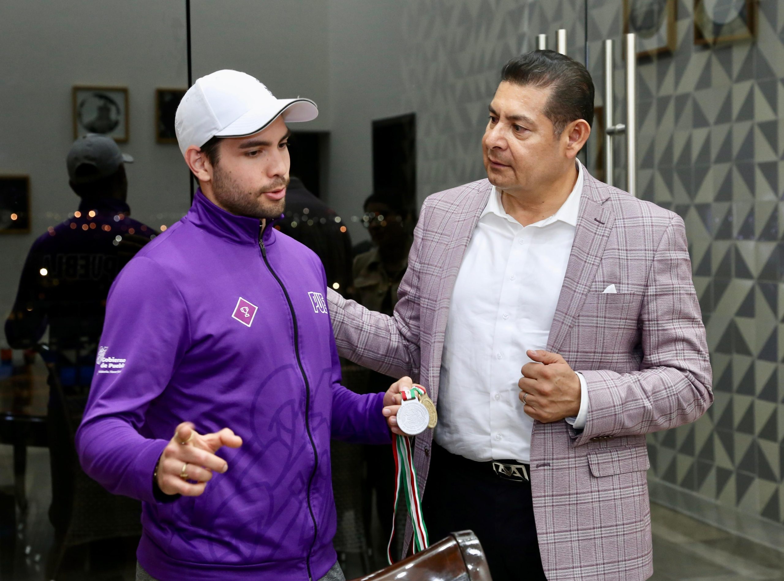 CIUDAD DE PUEBLA, Puebla.- El gobierno de Puebla a través de la Secretaría del Deporte y Juventud, duplicará los apoyos que reciben las y los deportistas que son galardonados con medallas, con el objetivo de reconocer su esfuerzo y dedicación, afirmó el gobernador Alejandro Armenta, durante un encuentro con el esgrimista poblano Gibran Zea.