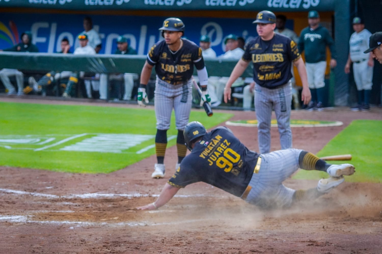 Leones reaccionó y le dio la vuelta a la pizarra en el sexto rollo; tras ponchar a Art Charles, Daniel Zazueta aceptó par de hits, esto provocó su salida y entró Moisés Díaz, este fue recibido con doblete al derecho de Webster Rivas para impulsar par de anotaciones, después Wilmer Difo remolcó una más con toque de bola para apretar el juego, más adelante Henry Ramos respondió con la casa llena para darle la vuelta a la pizarra con sencillo al izquierdo.