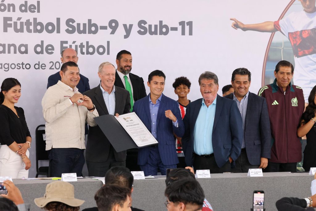CIUDAD DE PUEBLA, Puebla.- El gobernador de Puebla, Alejandro Armenta, y el presidente ejecutivo de la Federación Mexicana de Fútbol (FMF), Ivar Sisniega, presentaron de manera oficial el Campeonato Nacional de Fútbol Sub-9 y Sub-11, la competencia infantil más importante en el país que tendrá como sede a la entidad poblana.