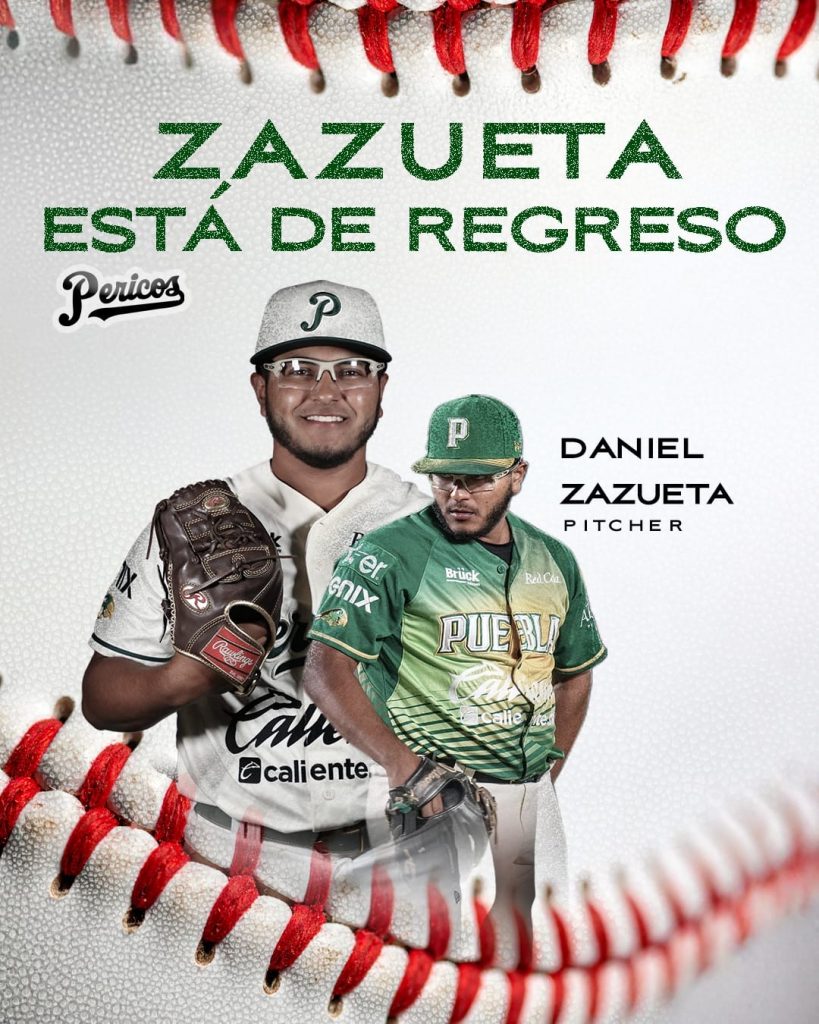 Daniel Eduardo Zazueta nació el 13 de octubre del 2000 en Navojoa Sonora. Debutó en Liga Mexicana en la campaña del 2022 con los Piratas de Campeche. Se mantuvo tres años con la novena filibustera y fue en la temporada 2025 que se integró con los Pericos de Puebla. La campaña pasada no tuvo decisión en su récord y tuvo acción en 20 cotejos. Zazueta ha tenido participación internacional, en el 2024 formó parte del combinado de futuras estrellas de la LMB que jugó en Corea del Sur. El pasado invierno militó con la novena de Tucson y tuvo foja de 1-1 con 4.82 de efectividad de carreras limpias.