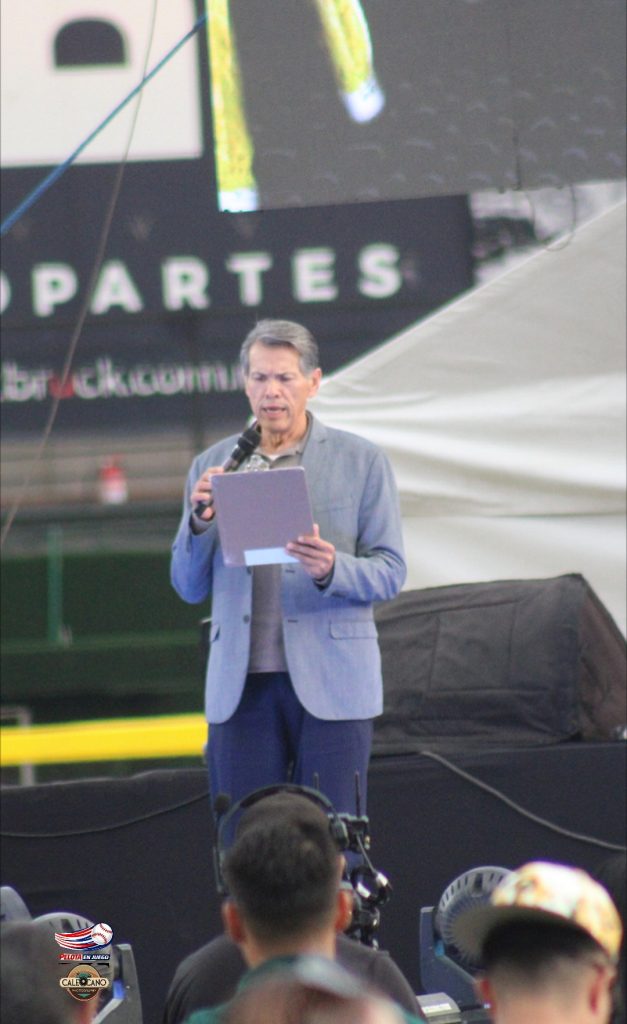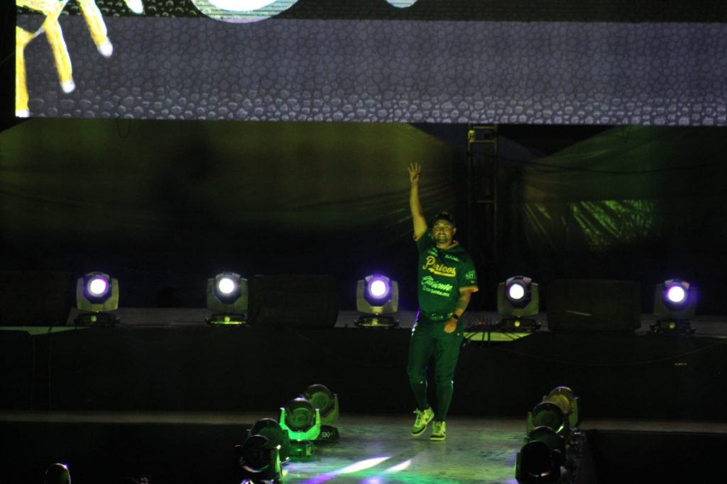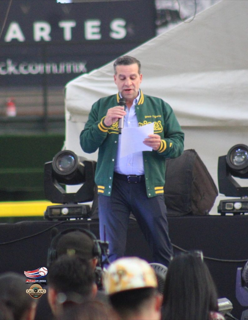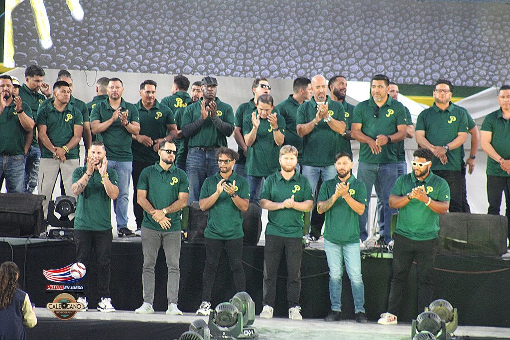 Después la voz de Miguel Ángel Byrd se encargó de hacer la presentación, primero del cuerpo técnico encabezado por el manager Darryl Brinkley y después de cada uno de los jugadores verdes, posición por posición.